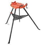Model 460-12 Portable TRISTAND Chain Vise. 1/8" - 12" Pipe Capacity. Model 460 features a larger work surface for increased pipe capacity, 12" diameter, rear support and receding ceiling brace screw. Features: Integral legs and tray that fold in for easy carrying and setup. Slots for hanging tools, pipe rest, three-pipe benders, and ceiling brace screw. Large vise base overhangs front legs for clear tool swing. Leg Chain – Retains legs even when subjected to rugged use during operation and transport. 12" Jaws and extended chain - grip up to 1/8" - 12" pipe